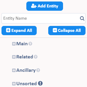 The Unsorted category contains entities who have not yet been assigned a role in the transaction. Once a role is assigned, the entity is automatically removed from the Unsorted category and sorted into the Main, Related, or Ancillary category. If all roles are removed from an entity, it is moved back to the Unsorted category.